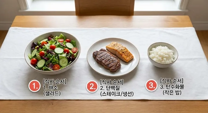 무엇을 먹느냐보다 중요한 것은 '어떤 순서로 먹느냐'입니다. 뷔페에 가서 본전 뽑겠다고 초밥이나 볶음밥부터 드시나요? 최악의 선택입니다.